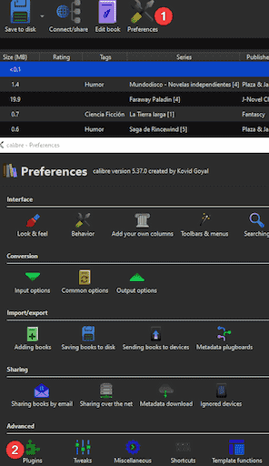 7. Apply all changes and return to the main window of calibre.
